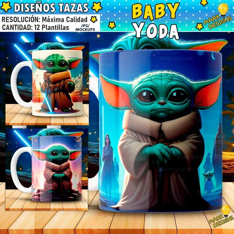 Plantillas Baby Yoda Tazas, ideal para sublimar tus tazas, listas para imprimir y sublimar.
