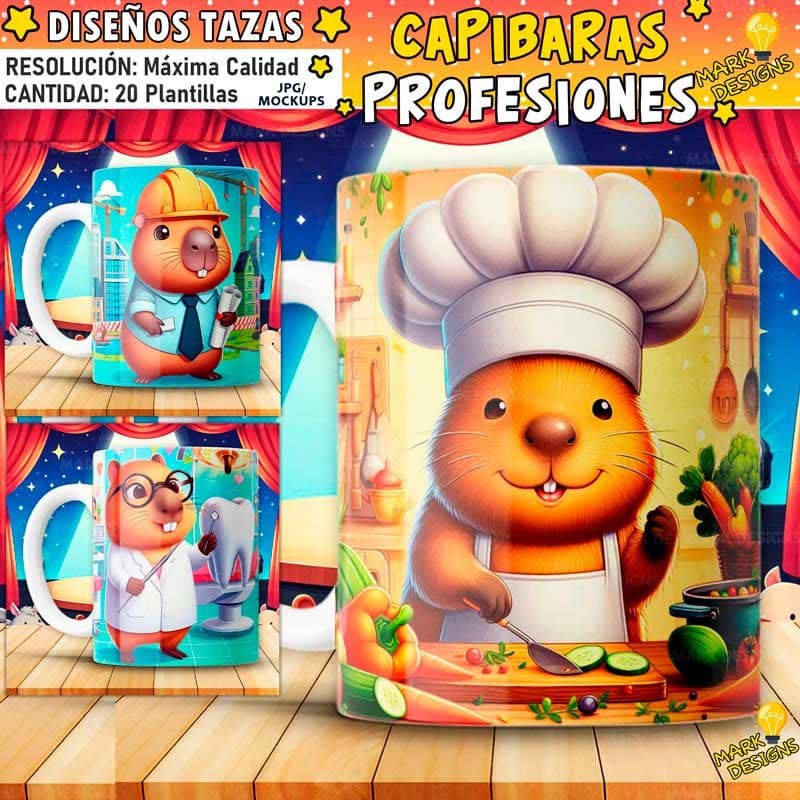 ►Plantillas Capibaras Profesiones tazas, Diseños de Capibaras Profesiones para sublimar tazas◄