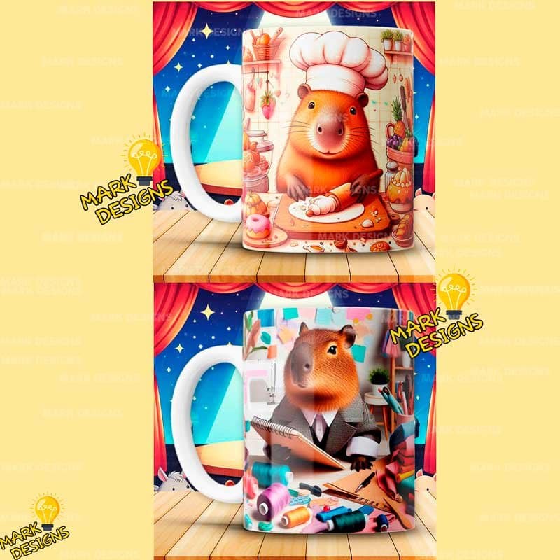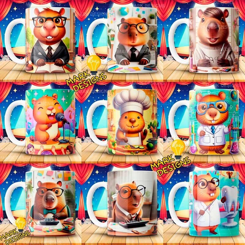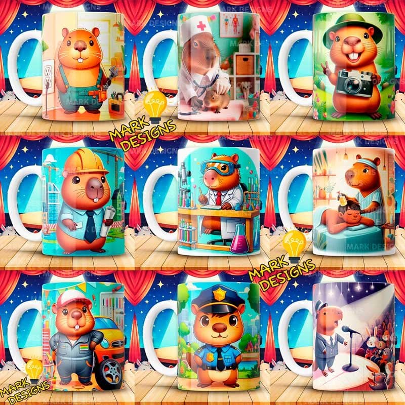 Plantillas Capibaras Profesiones tazas, ideal para sublimar tus tazas, listas para imprimir y sublimar.