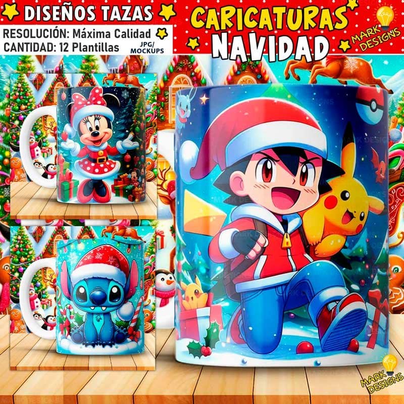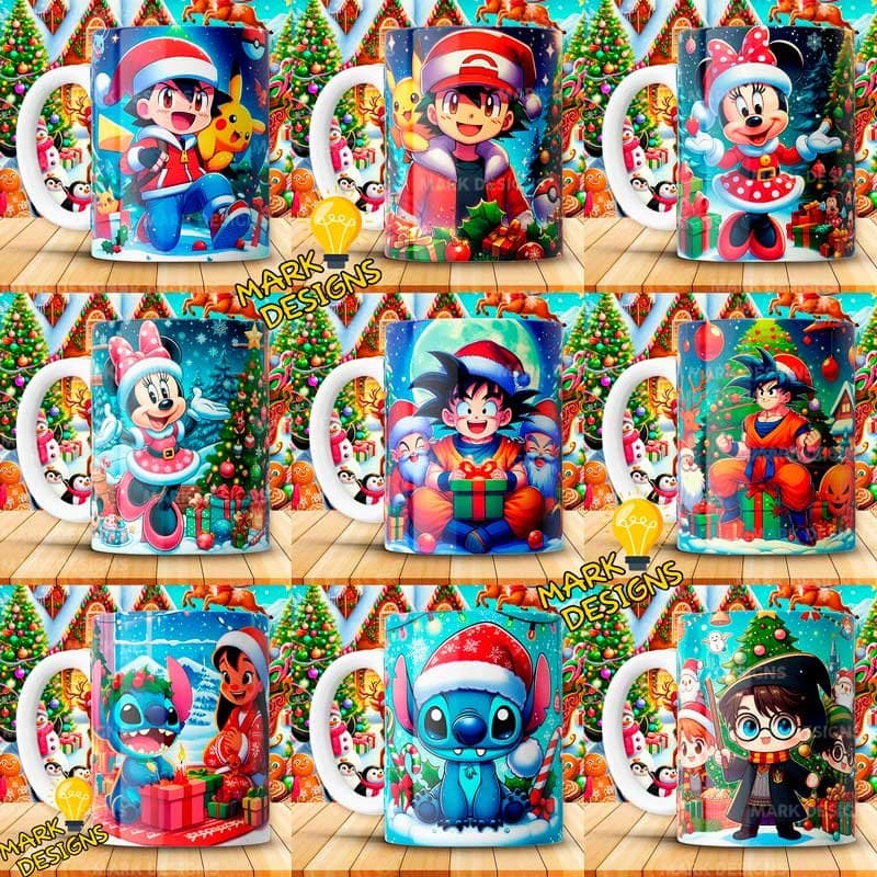 Plantillas Caricaturas Navideñas Tazas, ideal para estampar tus tazas, además están listas para imprimir y sublimar.