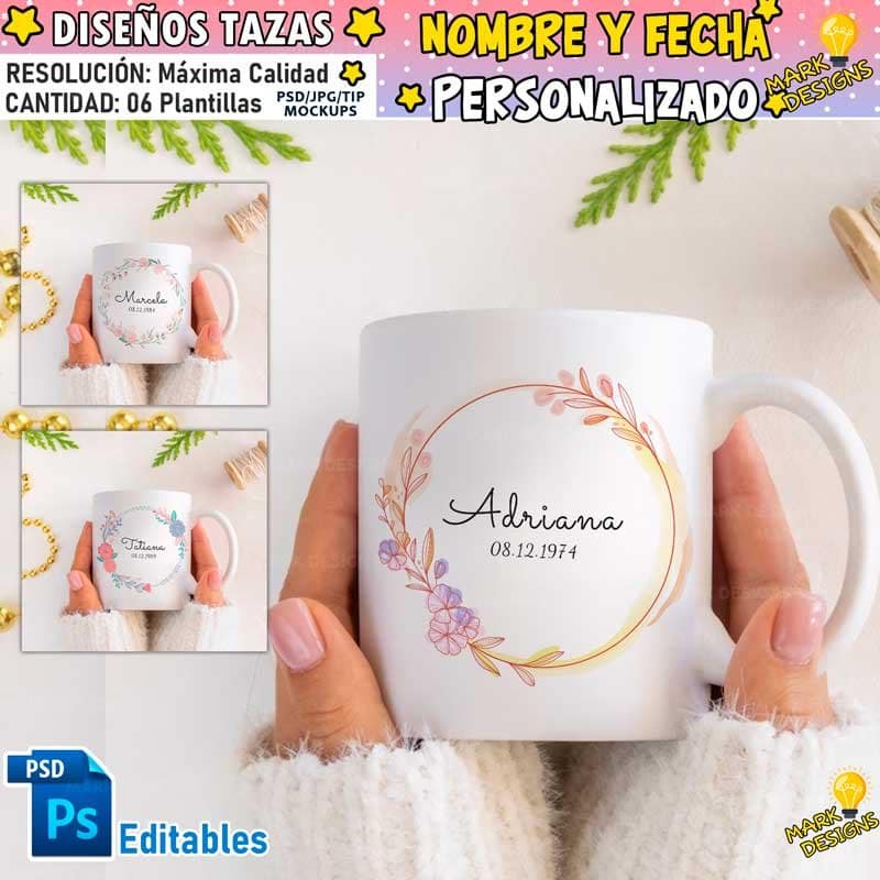 ►Plantillas con Nombre personalizado, tazas editables, Etc. Plantillas Premium◄