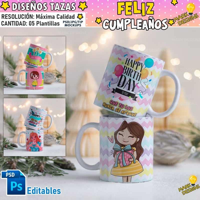 ►Plantillas Cumpleaños Tazas Sublimación, Diseños cumpleaños, Etc. Plantillas Premium◄