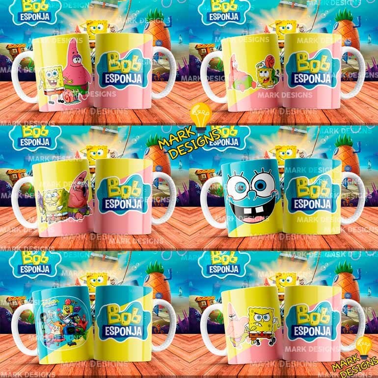 Plantillas de Bob Esponja Tazas, ideal para sublimar tus tazas, listas para imprimir y sublimar.