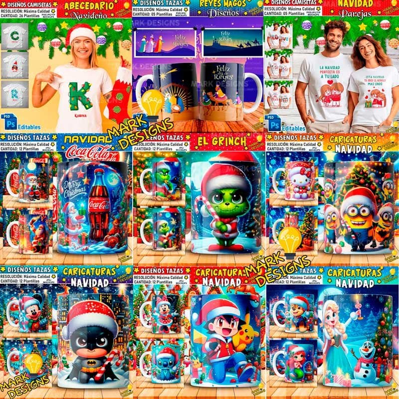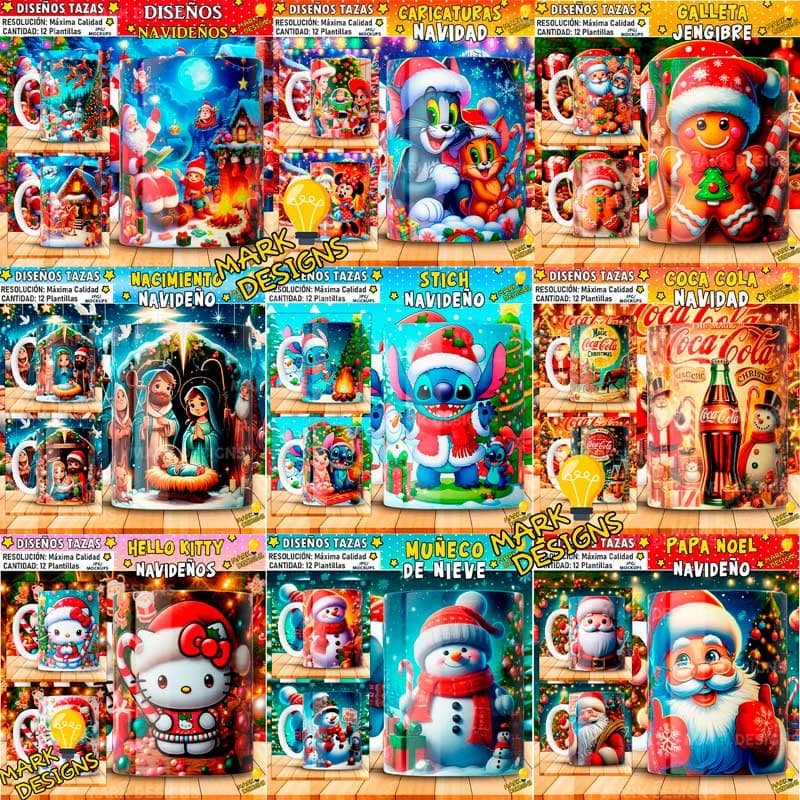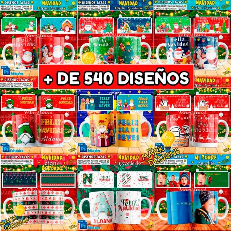 - Contenido: 540 Plantillas de Navidad para Tazas.