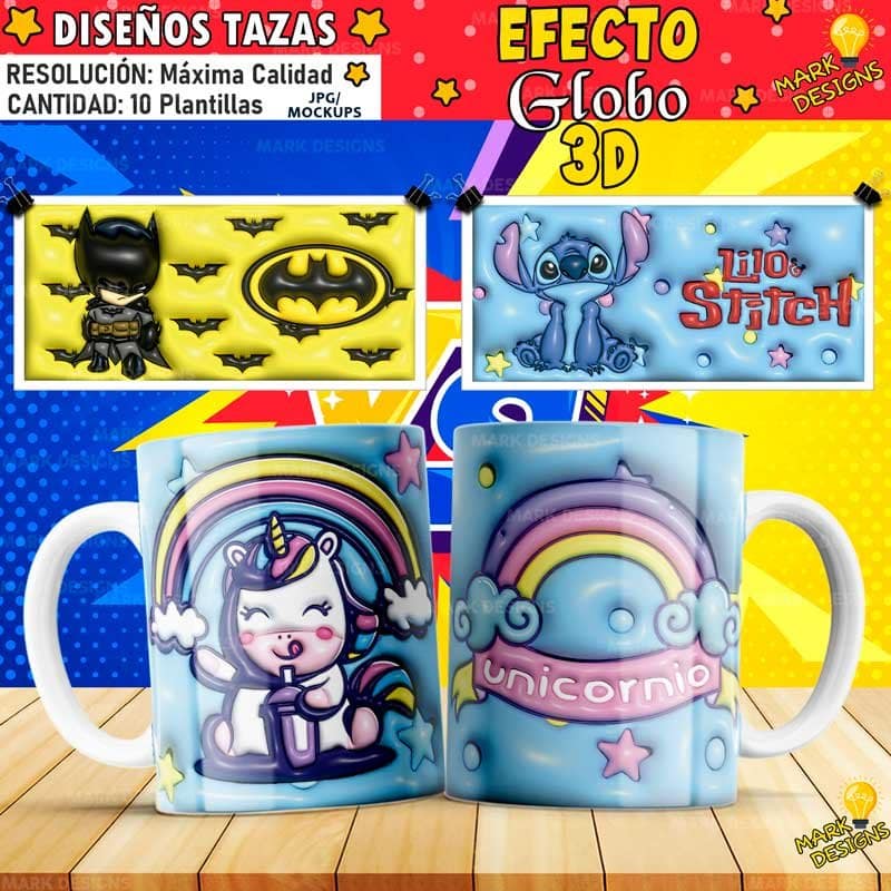 Plantillas Efecto Globo para Tazas, ideal para sublimar tus tazas, listas para imprimir y sublimar.