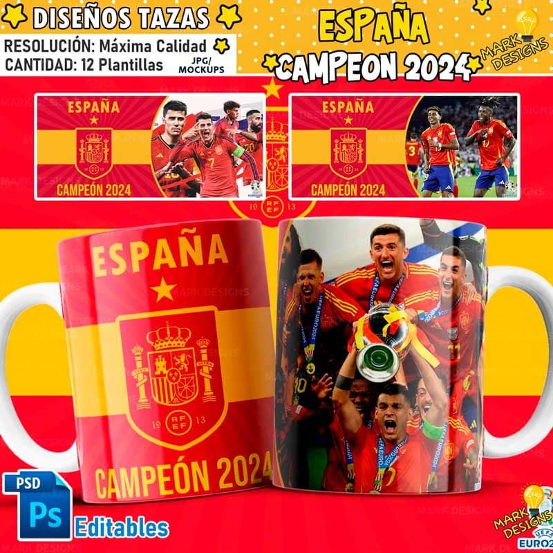 ►Plantillas España Campeón Eurocopa para Tazas, Etc. Plantillas Premium◄