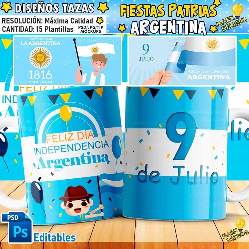 Este pack de Diseños Independencia Argentina para Tazas es fácil de editar. Y esta Listo para Imprimir y Sublimar. Estos diseños para tazas esta dedicado a las personas que se dedican a la sublimación, personalización de tazas y/o están por empezar en el negocio de la sublimación. Además no hace falta ser un experto en edición; ya que solo tiene que Descargar, Imprimir y Sublimar. Diseños Exclusivos y en Altísima Calidad.