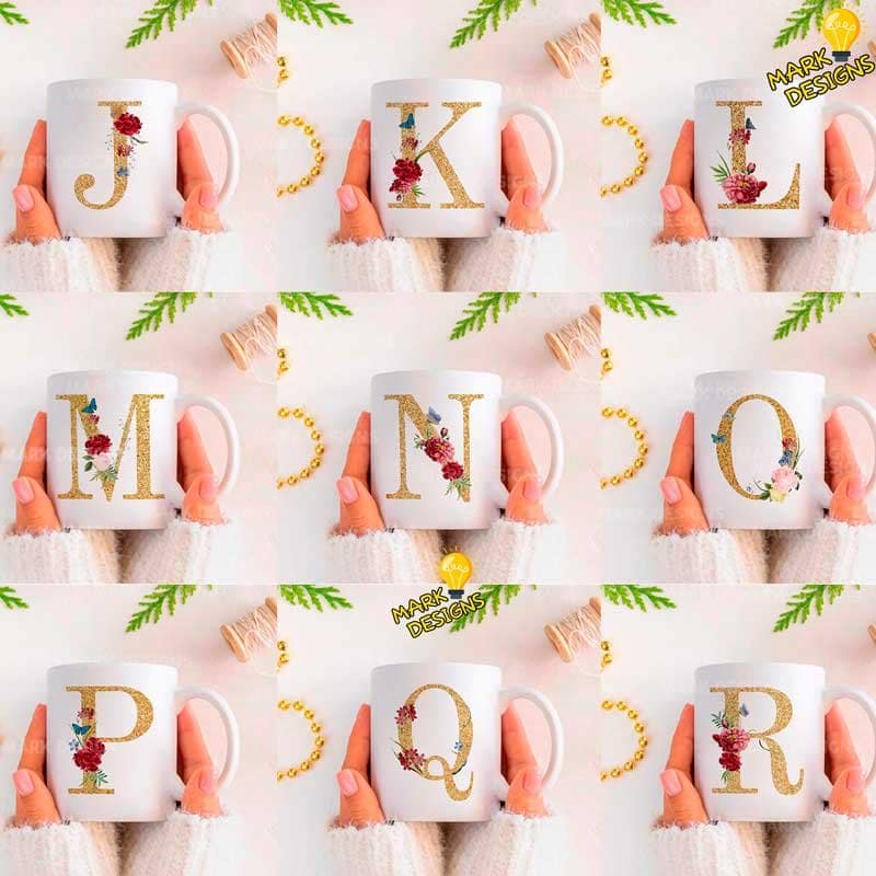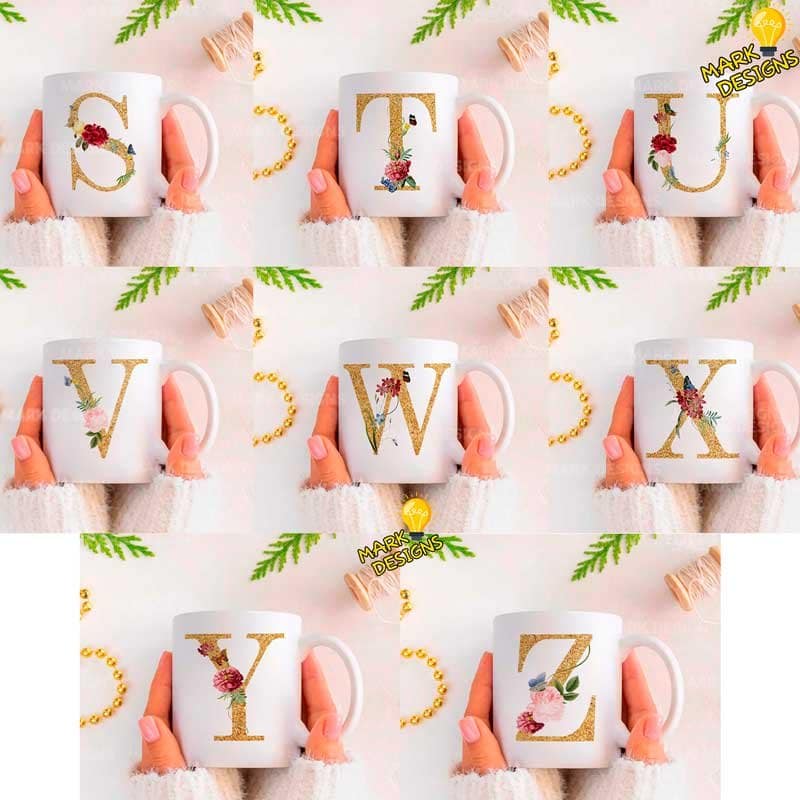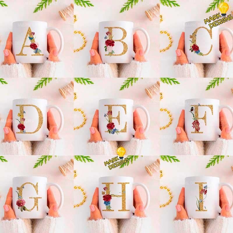 Plantillas Flores Abecedario Tazas, Sublimación para Tazas, Etc. Plantillas Premium