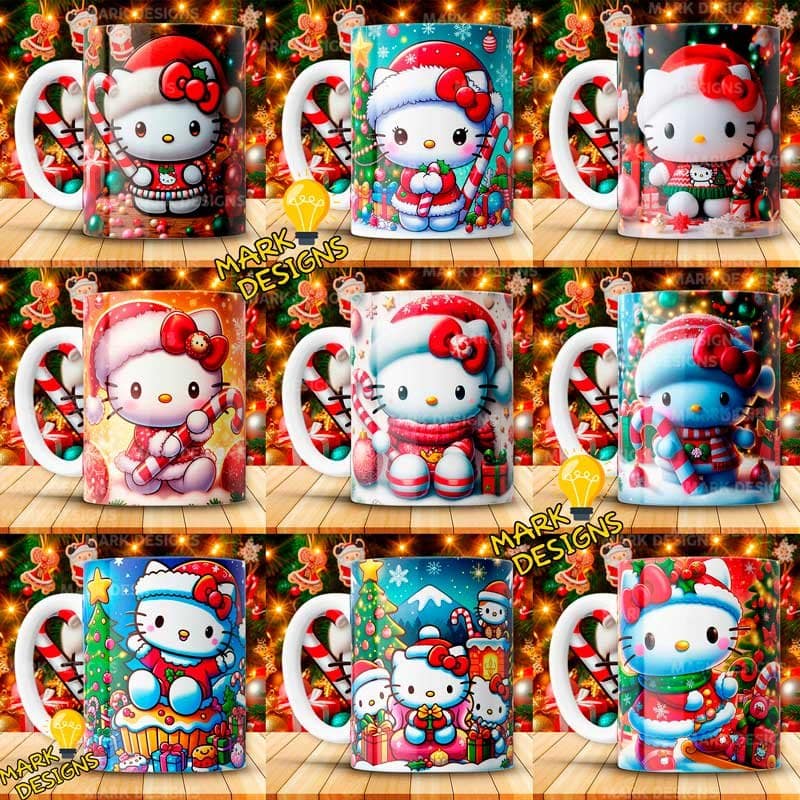 Plantillas Hello Kitty Navideños Tazas, ideal para estampar tus tazas, además están listas para imprimir y sublimar.