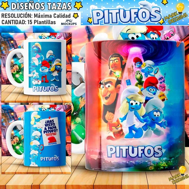 • Contenido: 15 Plantillas Los Pitufos para Tazas.