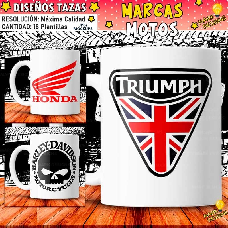 Plantillas Marcas Motos para Tazas, ideal para sublimar tus tazas, listas para imprimir y sublimar.