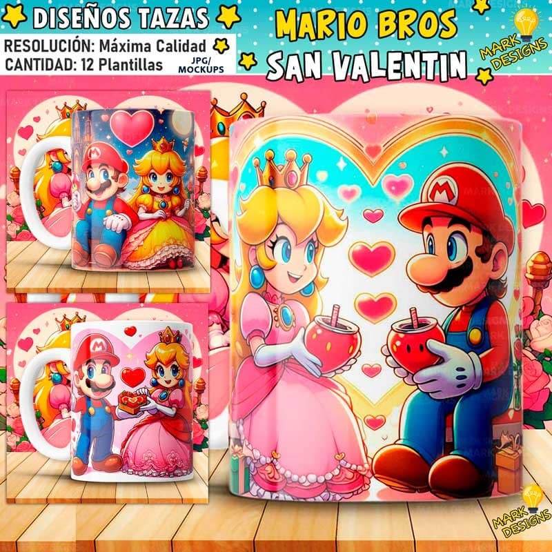 Este pack de Mario Bros San Valentín para tazas esta Listo para Imprimir y Sublimar. Estos diseños para tazas esta dedicado a las personas que se dedican a la sublimación, personalización de tazas y/o están por empezar en el negocio de la sublimación. Además no hace falta ser un experto en edición; ya que solo tiene que Descargar, Imprimir y Sublimar. Diseños Exclusivos y en Altísima Calidad.