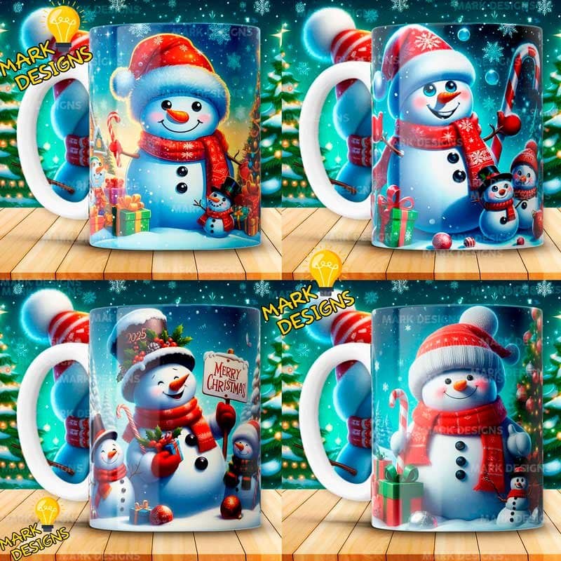 Plantillas Muñeco de Nieve Tazas, ideal para estampar tus tazas, además están listas para imprimir y sublimar.