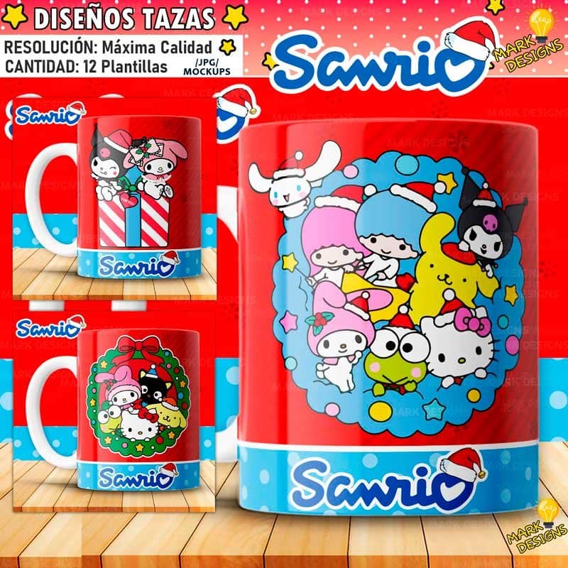 Plantillas Navideñas de Sanrio Tazas, ideal para estampar tus tazas, además están listas para imprimir y sublimar.