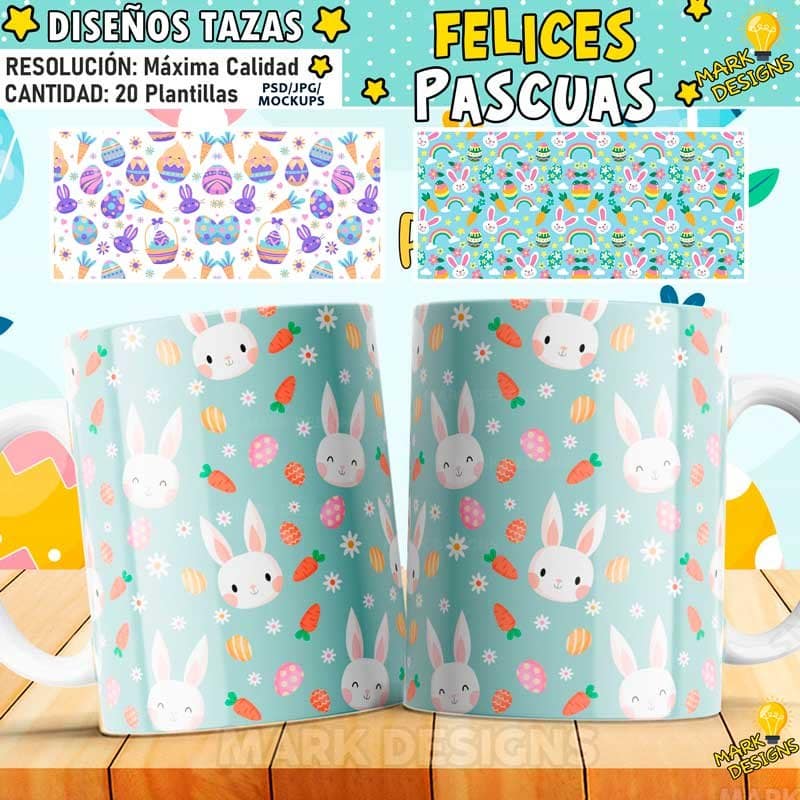 Plantillas para Pascuas de Tazas, ideal para sublimar tus tazas, listas para imprimir y sublimar.