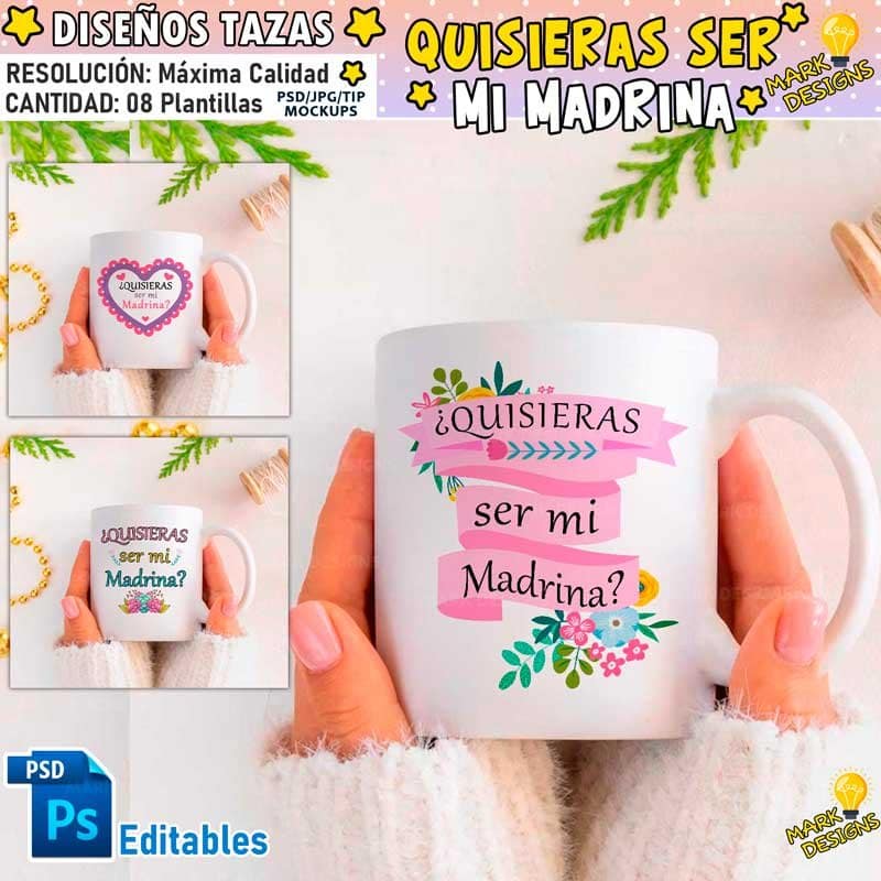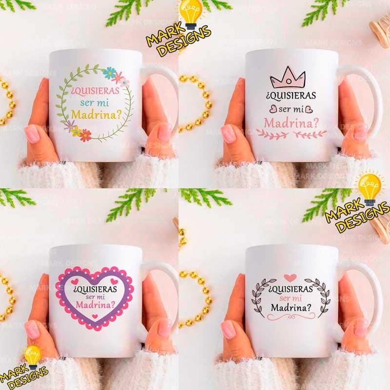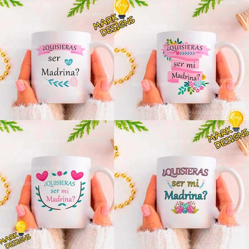 Plantillas Quisieras ser mi Madrina Tazas, ideal para sublimar tus tazas, listas para imprimir y sublimar.