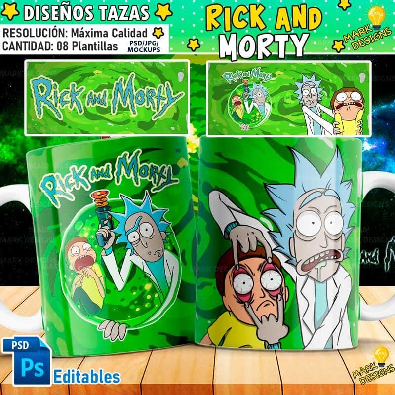 Plantillas Rick y Morty para Tazas, ideal para sublimar tus tazas, listas para imprimir y sublimar.