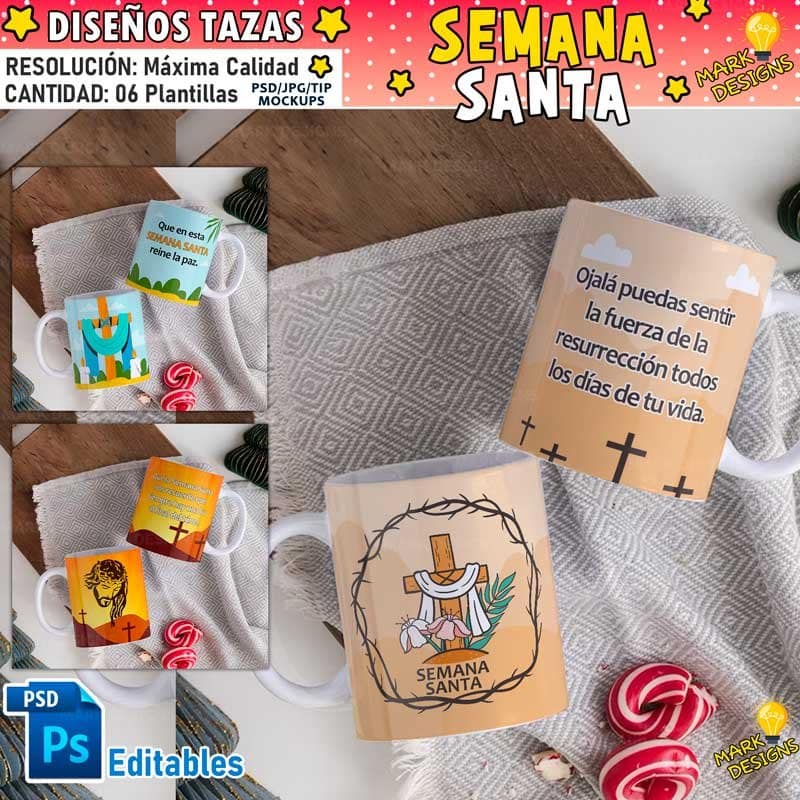 Plantillas Semana santa para Tazas, ideal para sublimar tus tazas, listas para imprimir y sublimar.