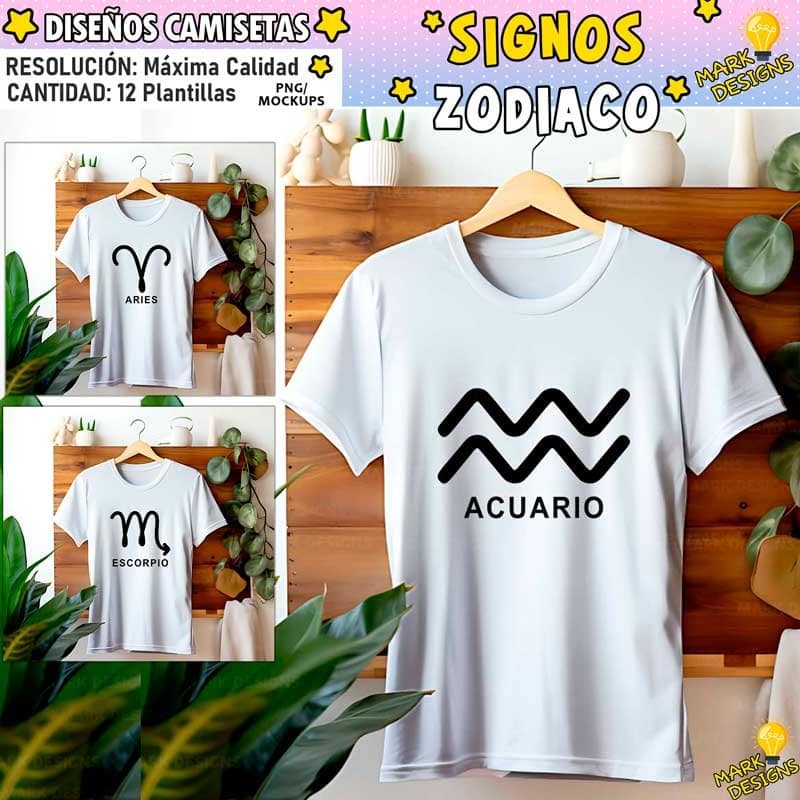 Plantillas Signos Zodiaco para Camisetas, ideal para sublimar tus camisetas, listas para imprimir y sublimar.