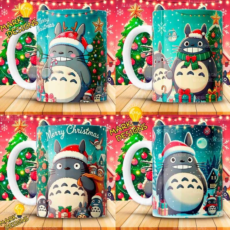 Plantillas Totoro Navideños Tazas, ideal para estampar tus tazas, además están listas para imprimir y sublimar.