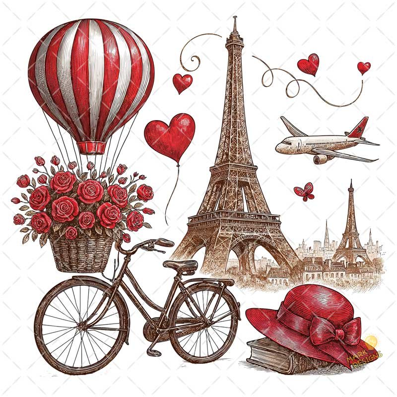 San Valentín en París PNG, ideal para utilizar en tus proyectos o sublimación de tazas, camisetas, Tumblr, vasos, cojines, scrapbooking y más, además están listas para descargar, imprimir y personalizar.