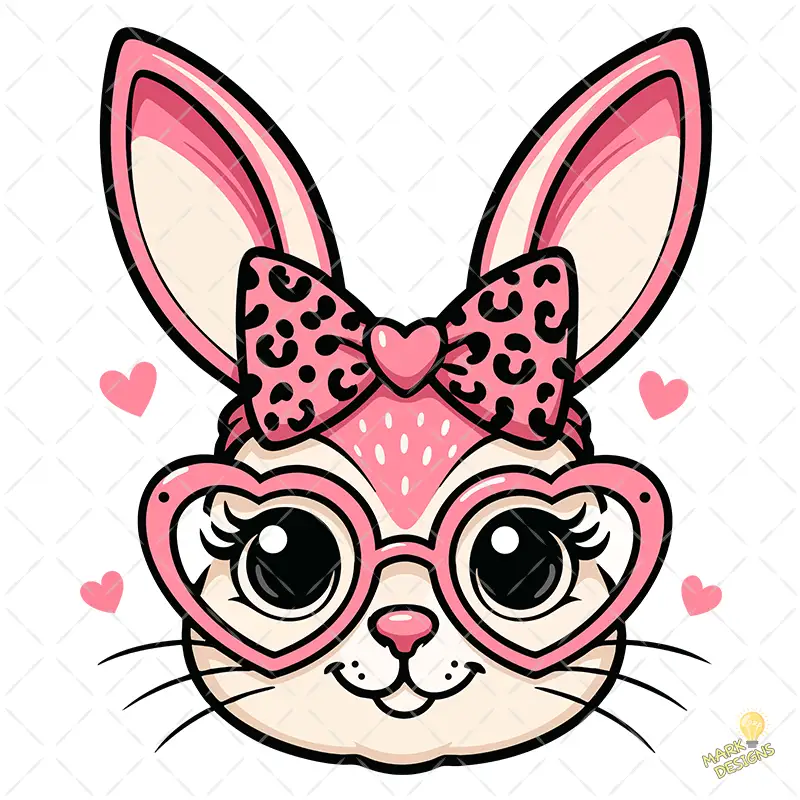 Conejita con Gafas de Corazón y Lazo Leopard Print – Vector y PNG 4K