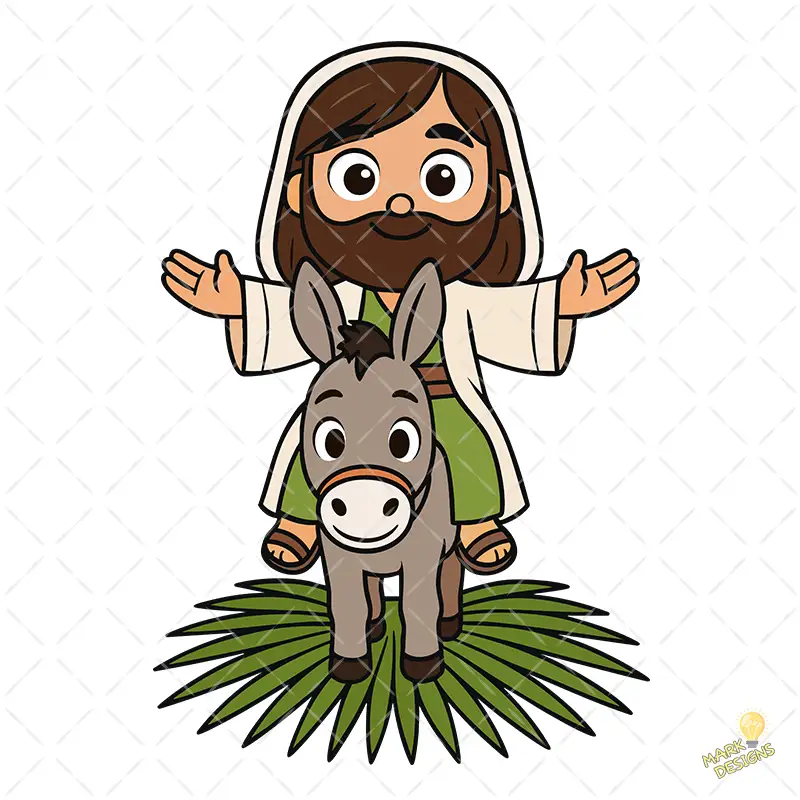 Vector Jesucristo Kawaii con Burrito y Hojas de Palma – Ilustración Gratis 4K
