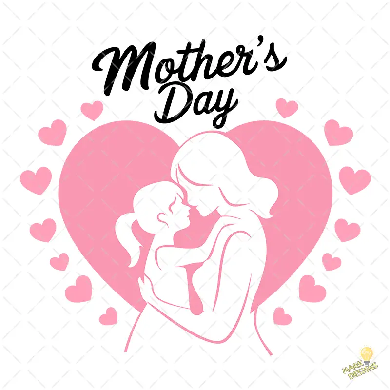 Ilustración Mother's Day Madre e Hija Corazones Negros – AI SVG PNG 4K