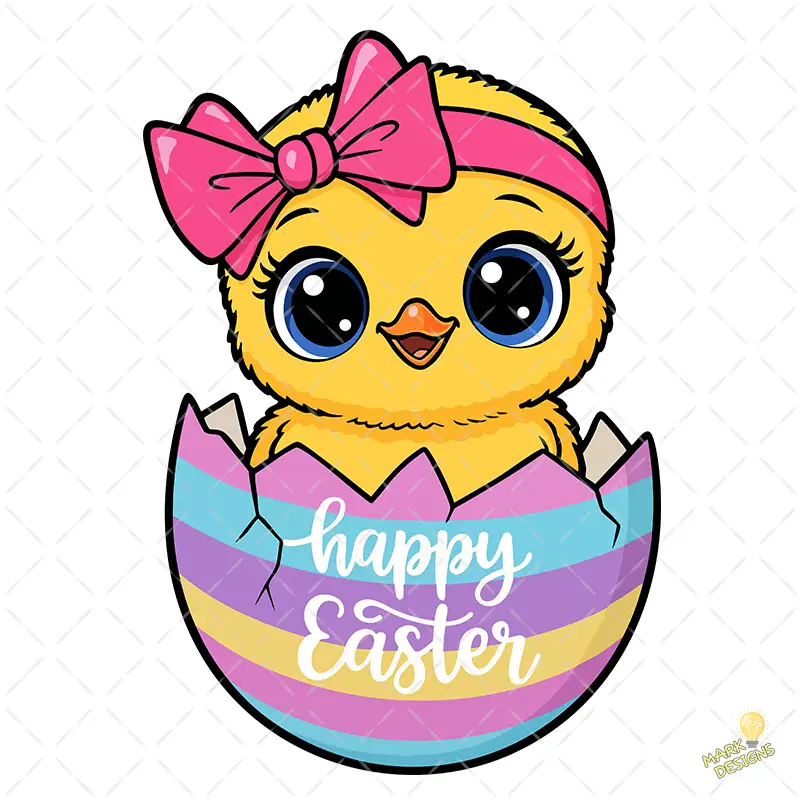 Pollito de Pascua en Huevo a Rayas Happy Easter – Vector y PNG 4K