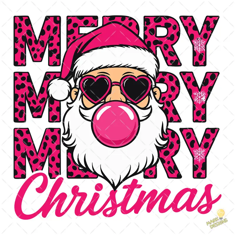 Santa Claus Cool con Chicle y Letras Leopard Print Rosa – Vector y PNG 4K