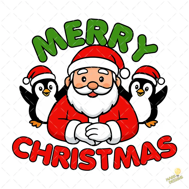 Santa Claus con Pingüinos Navideños Merry Christmas – Vector y PNG 4K