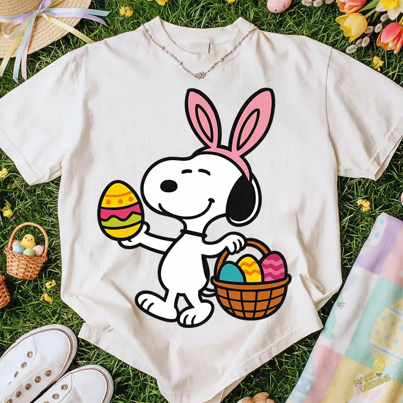 Vector Snoopy Pascua – Ilustración de Huevo Decorado para Camisetas