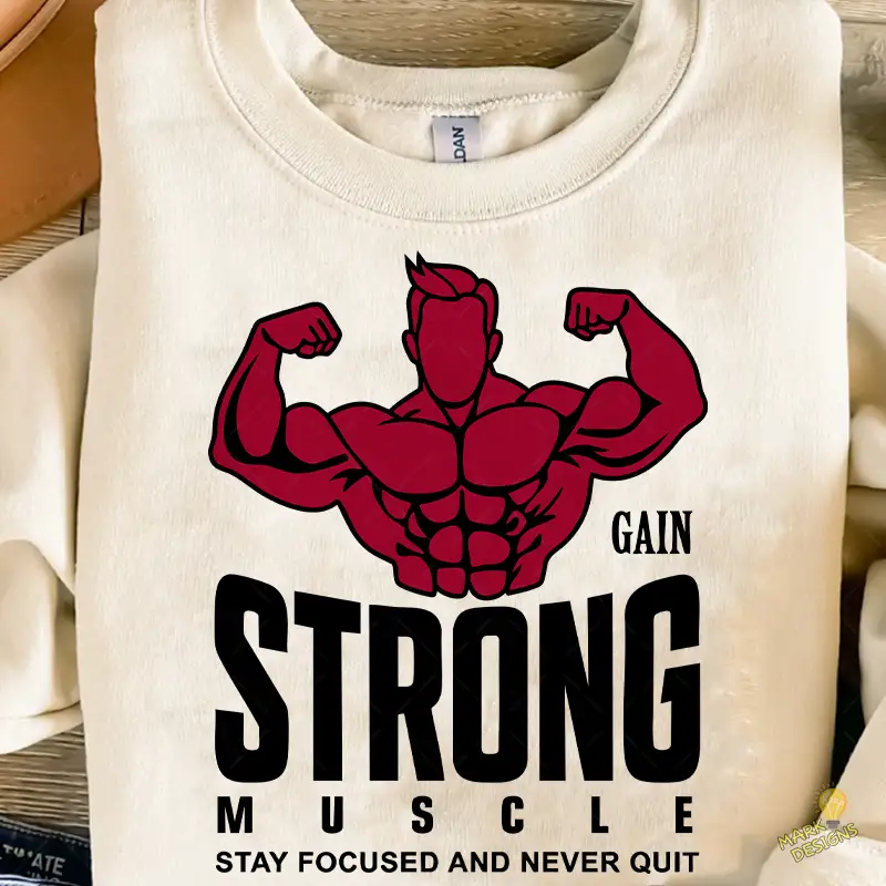 Vector Fisicoculturista Strong Muscle Stay Focused para Sublimación