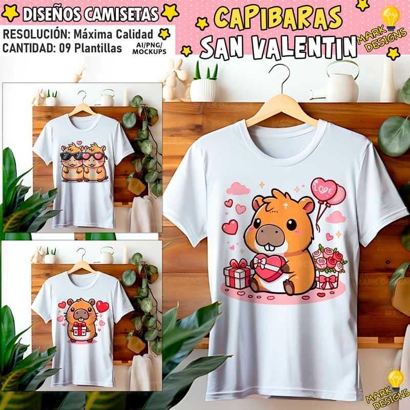 ►Vectores de Capibaras San Valentín Png, Etc. Vectores de Capibara para playeras y más◄
