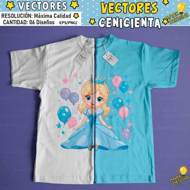 Vectores de la Cenicienta, pueden ser utilizados en una gran variedad de impresiones, incluyendo: Pósters, Camisetas, Tarjetas de invitación, Stickers y pegatinas, Decoración para cumpleaños, Impresiones de pared, Tazas y tumbler, Sublimación, Merchandising, etc.