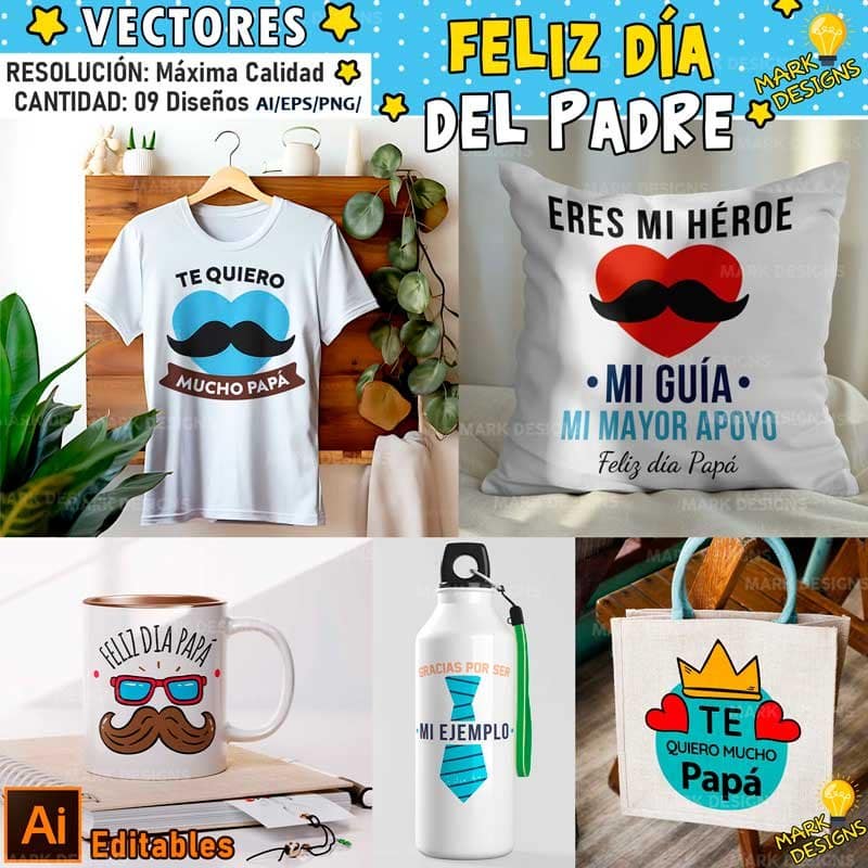 Nuestros Vectores de Feliz día Papá son perfectos para crear regalos personalizados para papá. Descarga nuestros vectores del día del padre y personaliza tus productos con diseños únicos.